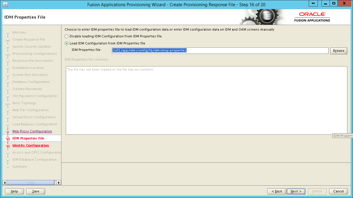 To stop creating this response file and resume later, click Save. This action creates a partial response file. A partial response file cannot be used to provision an environment.